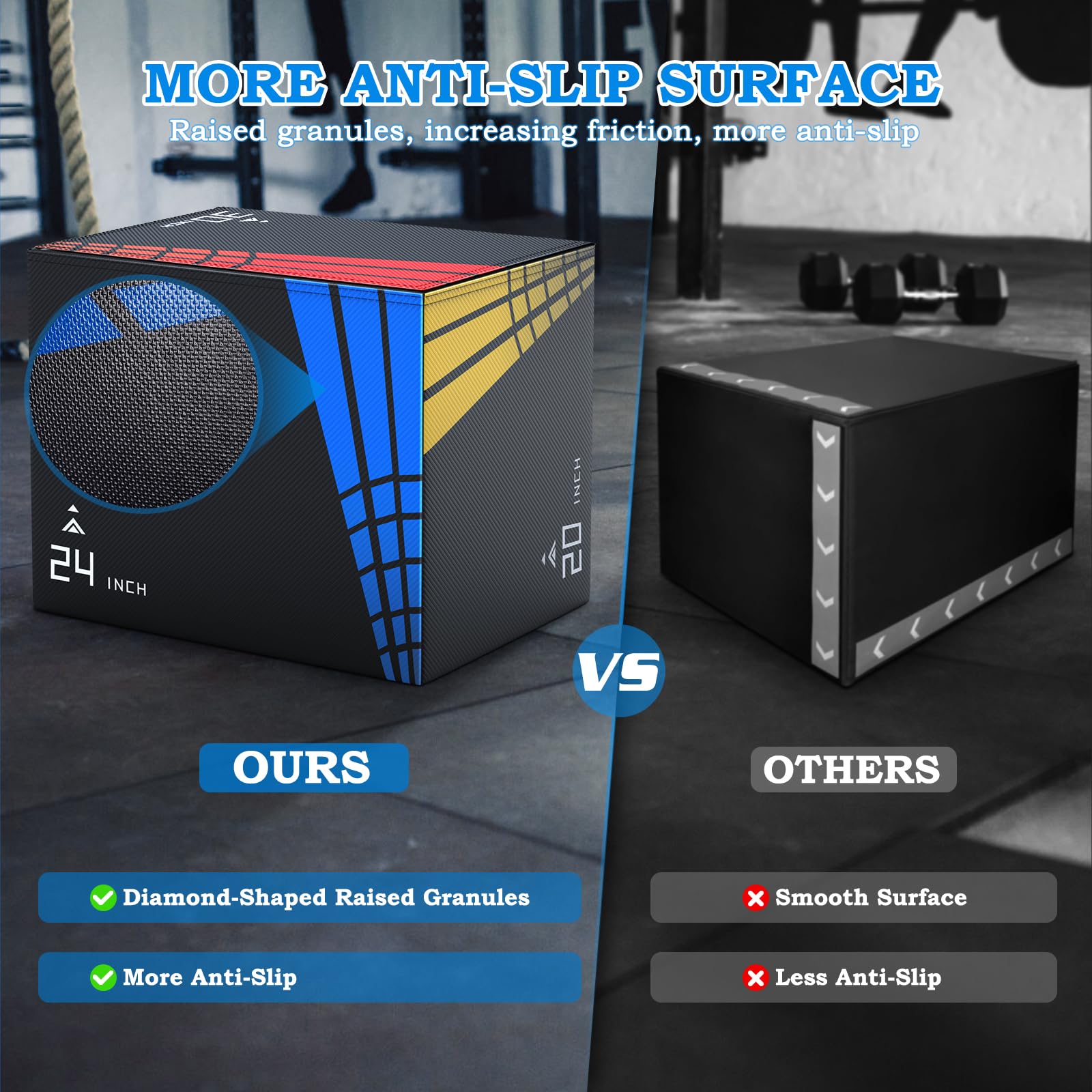 XDDIAS 3-in-1 Foam Plyometric Jump Box,Stable Plyo Box Covered with 3MM Anti-Slip Particles,30โx24โx20โStable Box Jumps for Home Gym Fitness Workout Training,440lb Weight Capacity