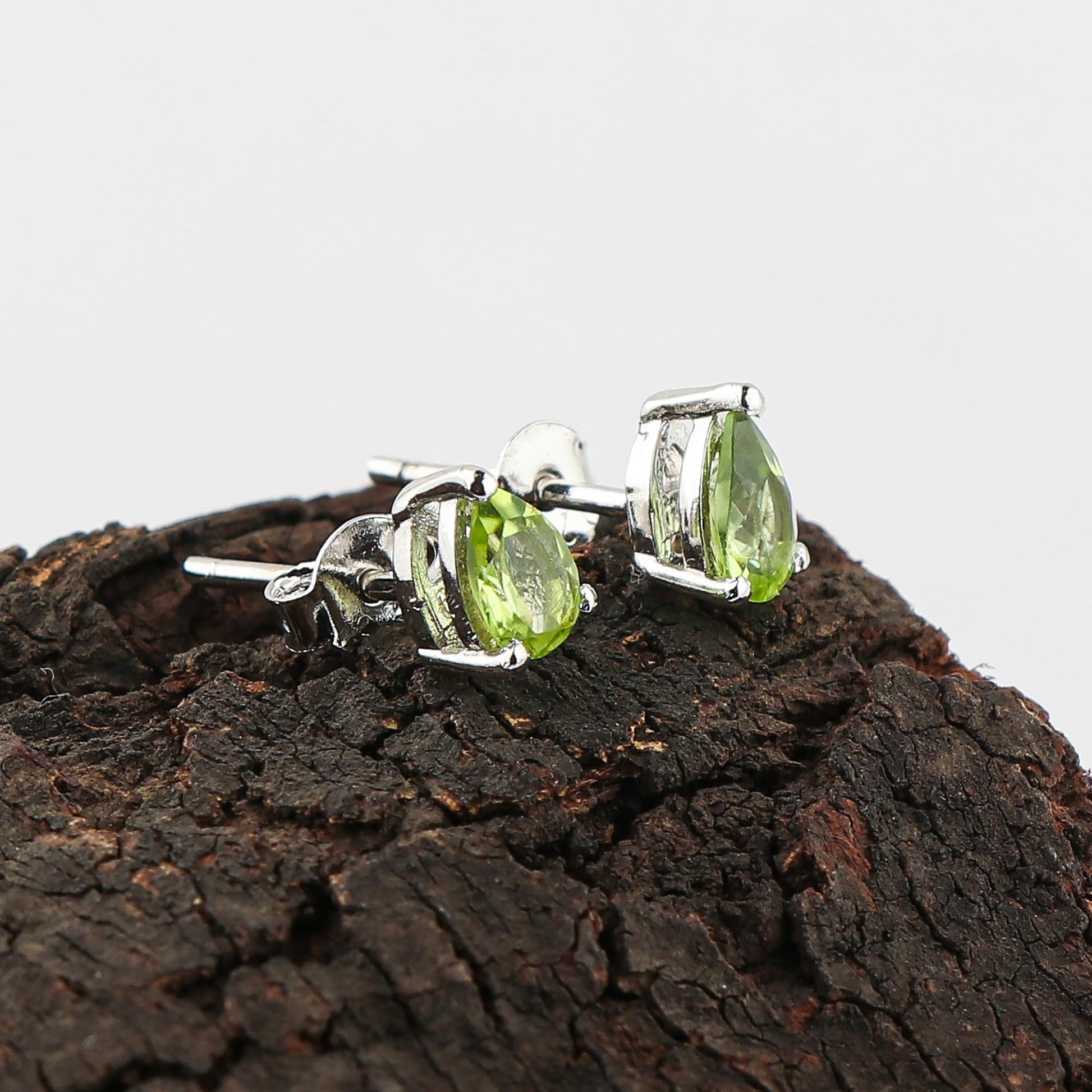 YASHEE Natural Peridot Gemstone Pear Shape Stud Earring For Women, Chakra Energy Healing Real Crystal, August Birthstone, Peridot Stud Earrings Women Unique Christmas Gift Jewelry