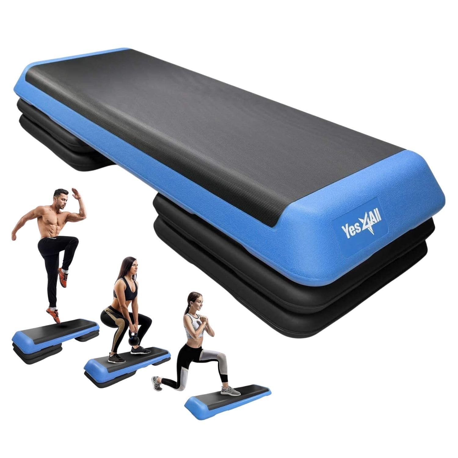 Yes4All Adjustable Workout Aerobic Exercise Step Platform Health Club Size with 4 Adjustable Risers Included and Extra Risers Options - Blue Black