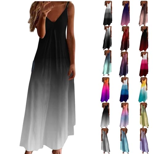 Details: YFGEFTR Summer Dresses for Women 2024 Casual V-Neck Sleeveless Maxi Dress Spaghetti Strap Long Dress Bohemian Beach Sundress