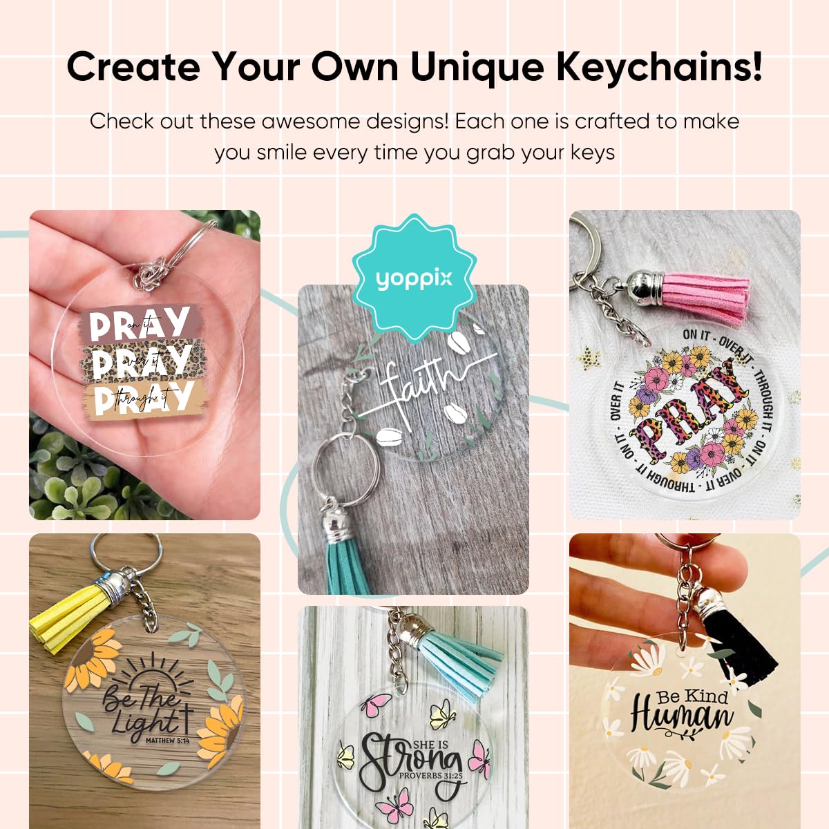 Details: YOPPIX 140 PCS Acrylic Keychain Blank Set, Faith Double-Sided UV DTF Stickers Acrylic Keychain Making Kits for Vinyl DIY Keychain Craft Project Employee Appreciation Gifts