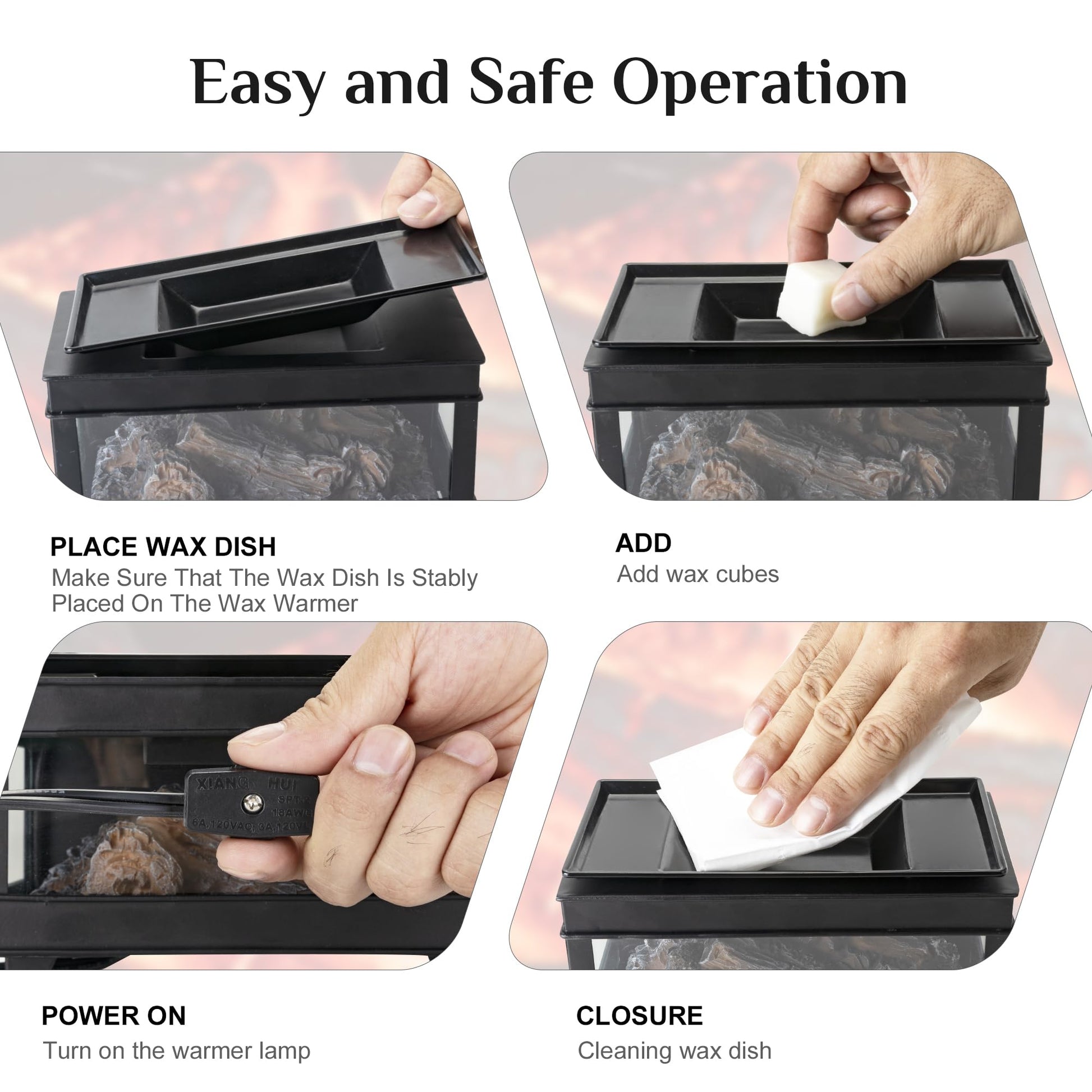 - ✅【Unique design】Wax Warmer combines a metal frame and transparent glass to create the appearance of a real fireplace. The electric heating plate warms the wax, while the Teflon technology wax dish is resistant to high temperatures and corrosion. The flashing LED lights add a unique dynamic to the fireplace wax warmer.