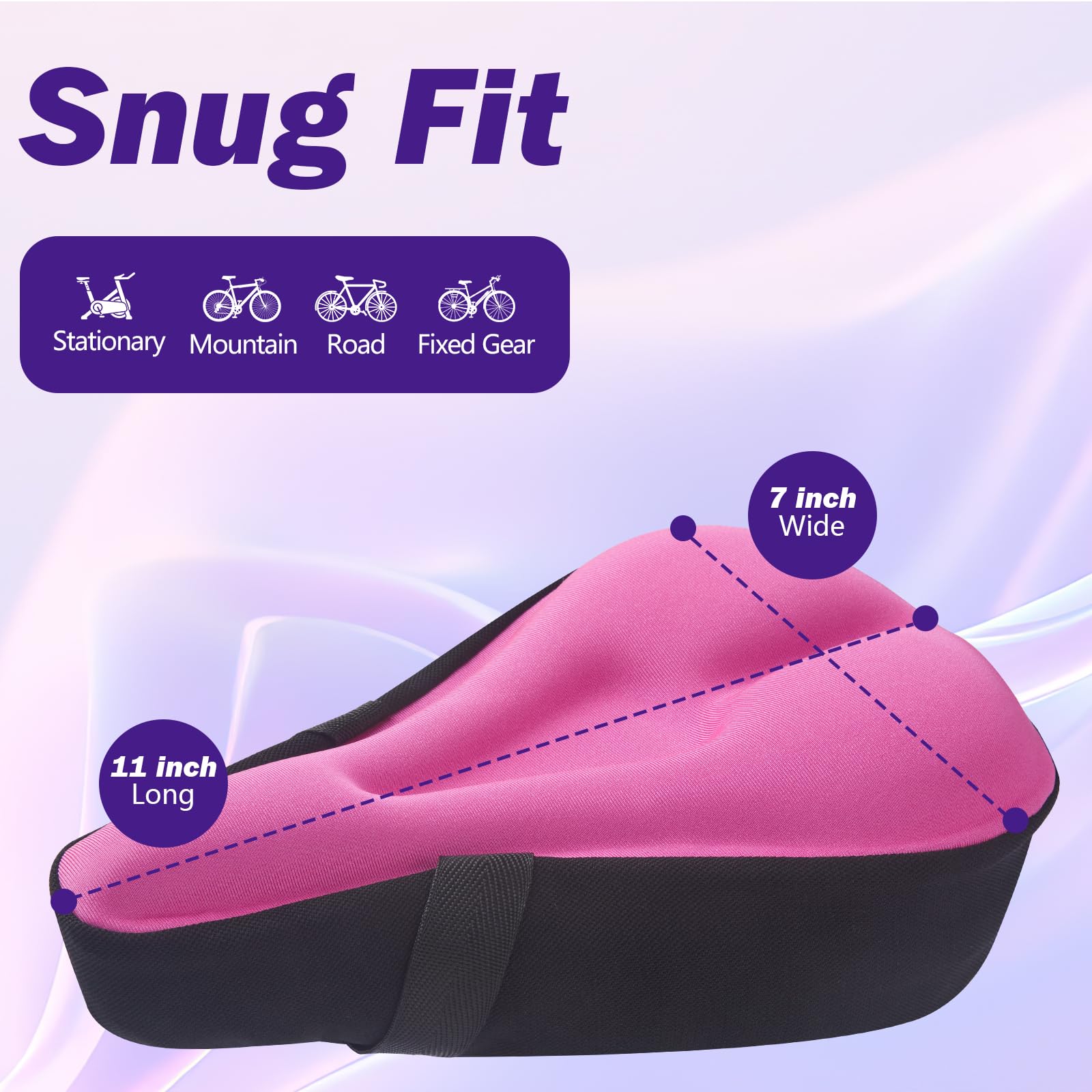 - Size & Compatibility: Our gel seat saddle dimension is 11*7inch. The exercise bike seat cushion is fit for spin class/peloton/nordictrack etc indoor stationary cycling spinning bike, and also fit for outdoor mountain MTB/road/commuter/cruiser comfort cycle. Please confirm this bike seat cushion can fit your original bike seat before ordering.