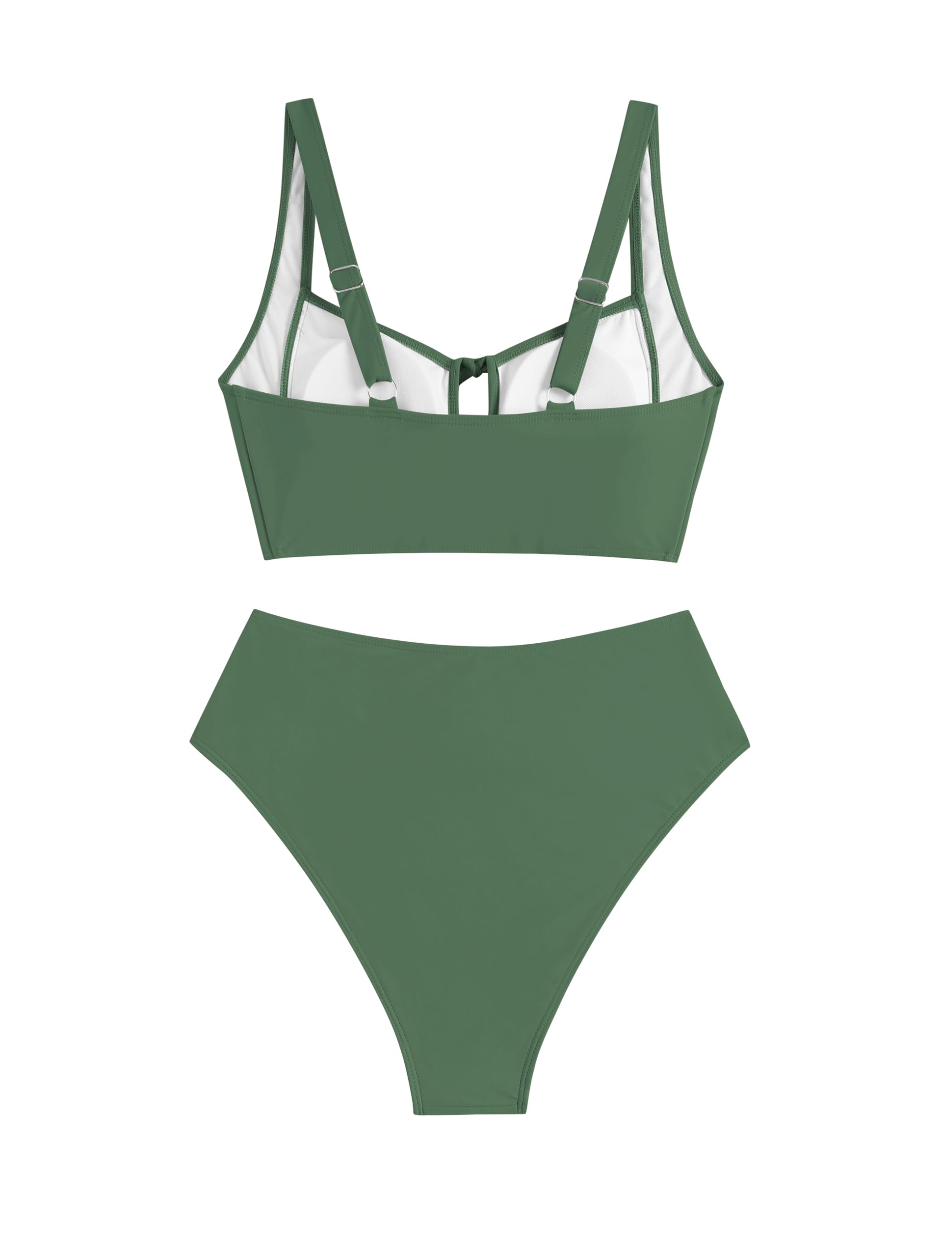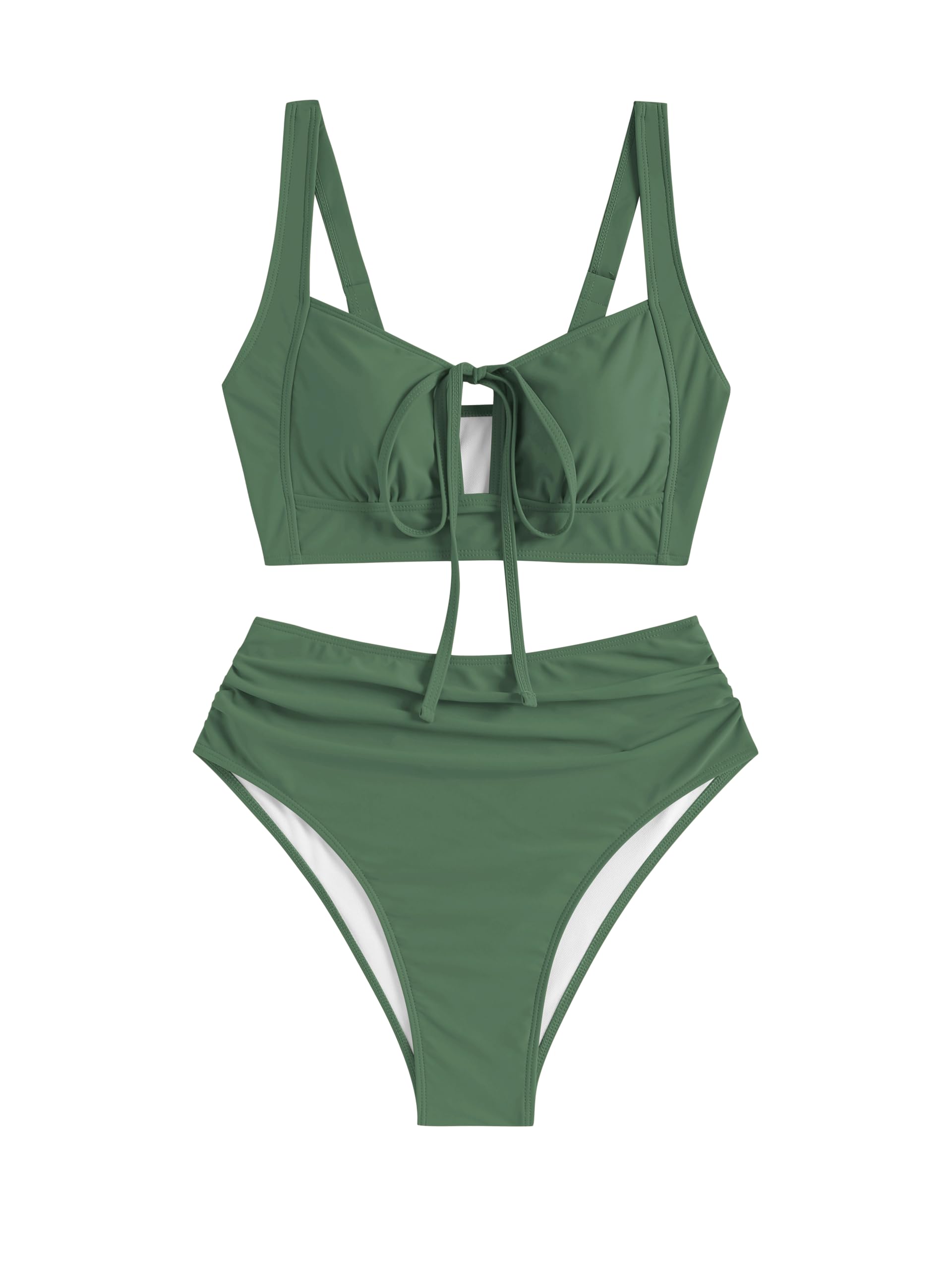 ZAFUL Two Piece Bathing Suits for Women Cheeky Tie Front Push up Adjustable Strap Bikini for Womens Beach Holiday Green L