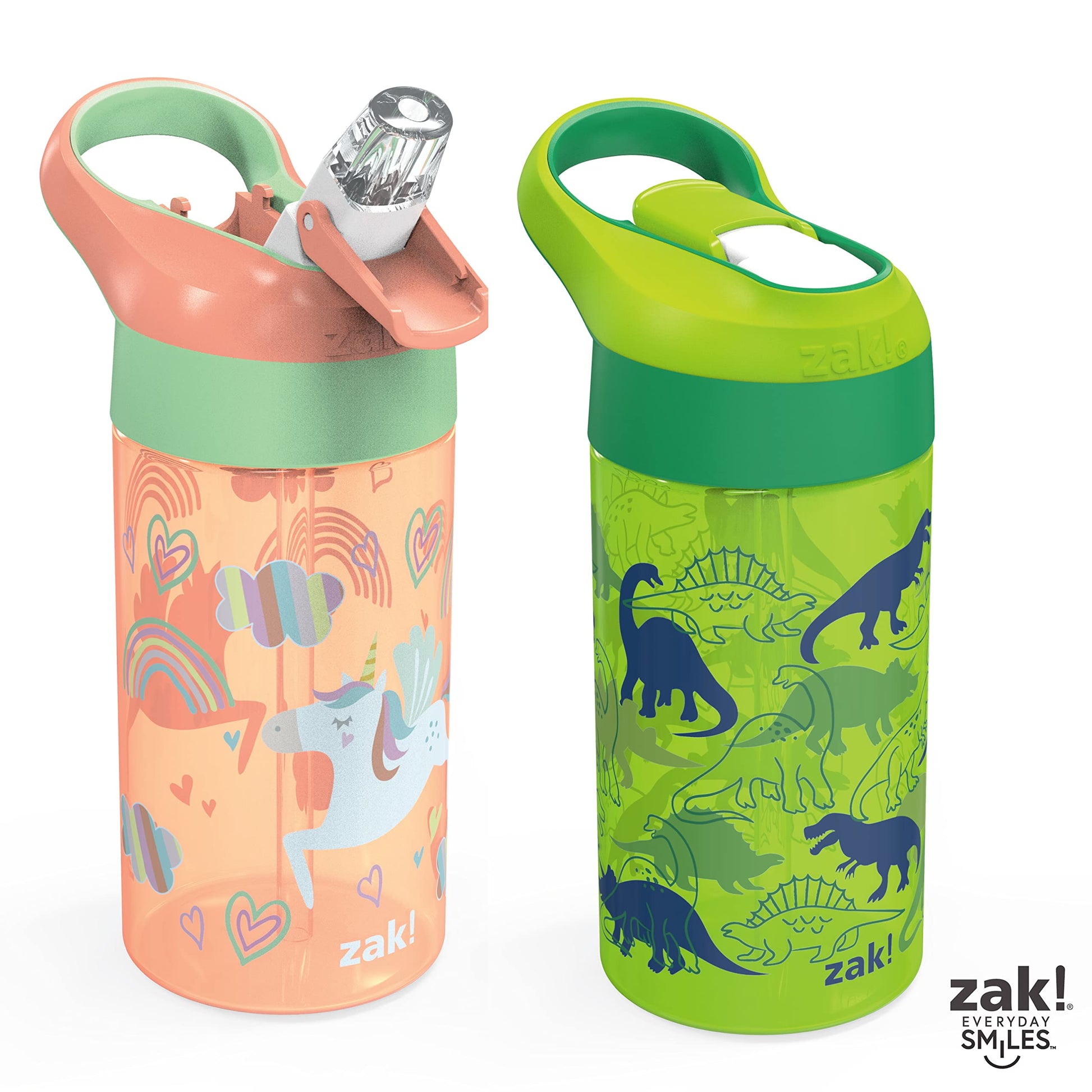 - SIZE: This set contains two Zak water bottles with a 16-ounce capacity, each measuring 7.27 inches tall and 3.88 by 2.83 inches wide. The BPA-free water bottles are recommended for children ages 3+.