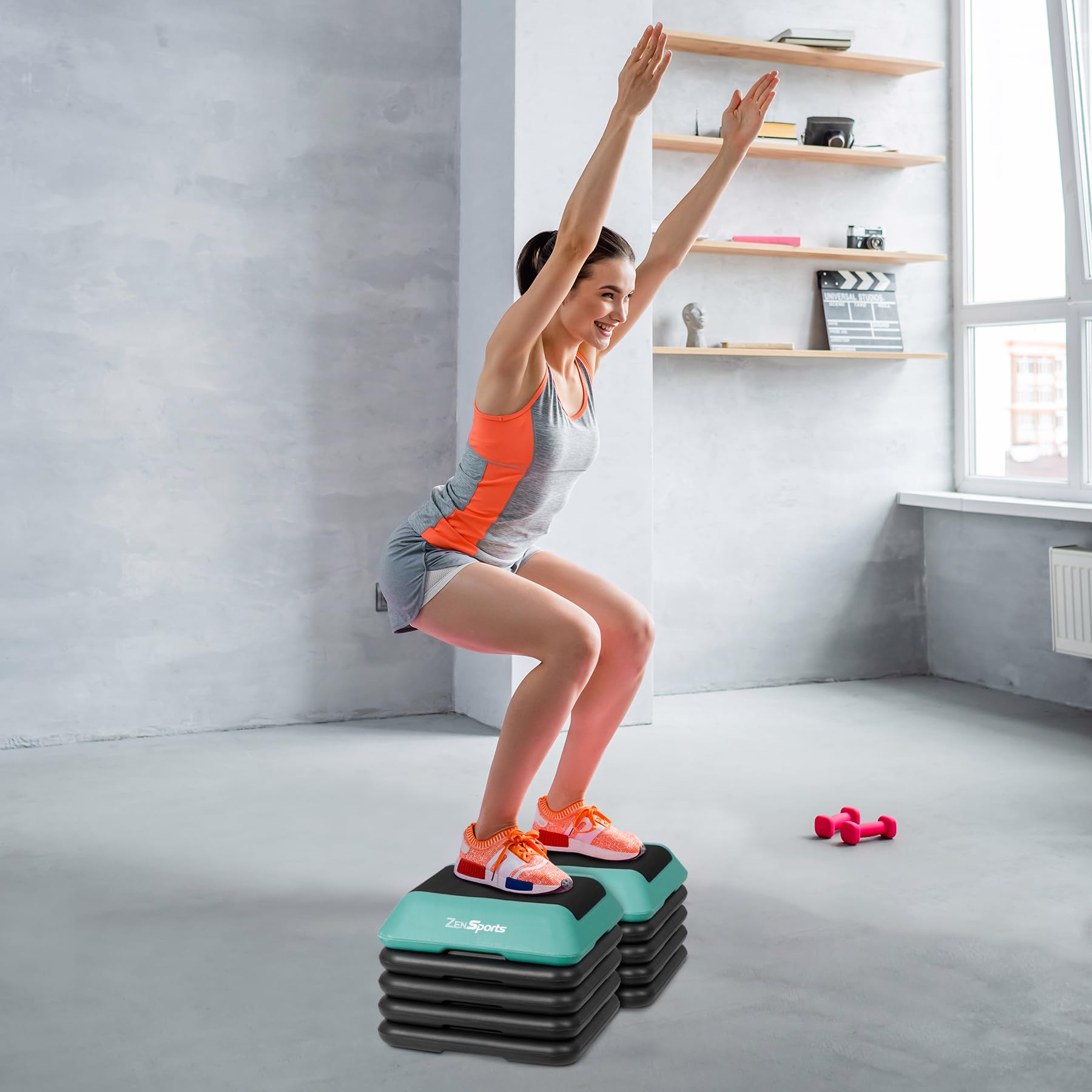 ZENY 16" x 16" High Aerobic Step Aerobics Stepper Platform with 4 Risers, Exercise Workout Stepper, Home Gym Equipment, Fitness Step Platform, Adjustable Aerobic Stepper (Green)