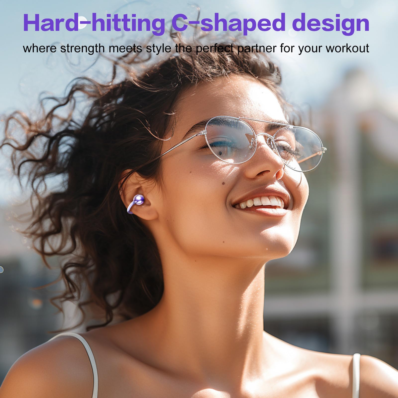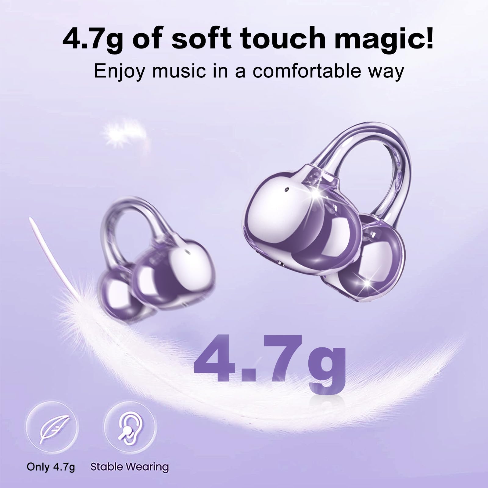 ZIHNIC S26 S26 Wireless Clip on Earbuds, Open Ear Wireless Bluetooth 5.4 Headphones with Mic, IPX5 Waterproof, 35Hr Play time, Light Weight -Purple